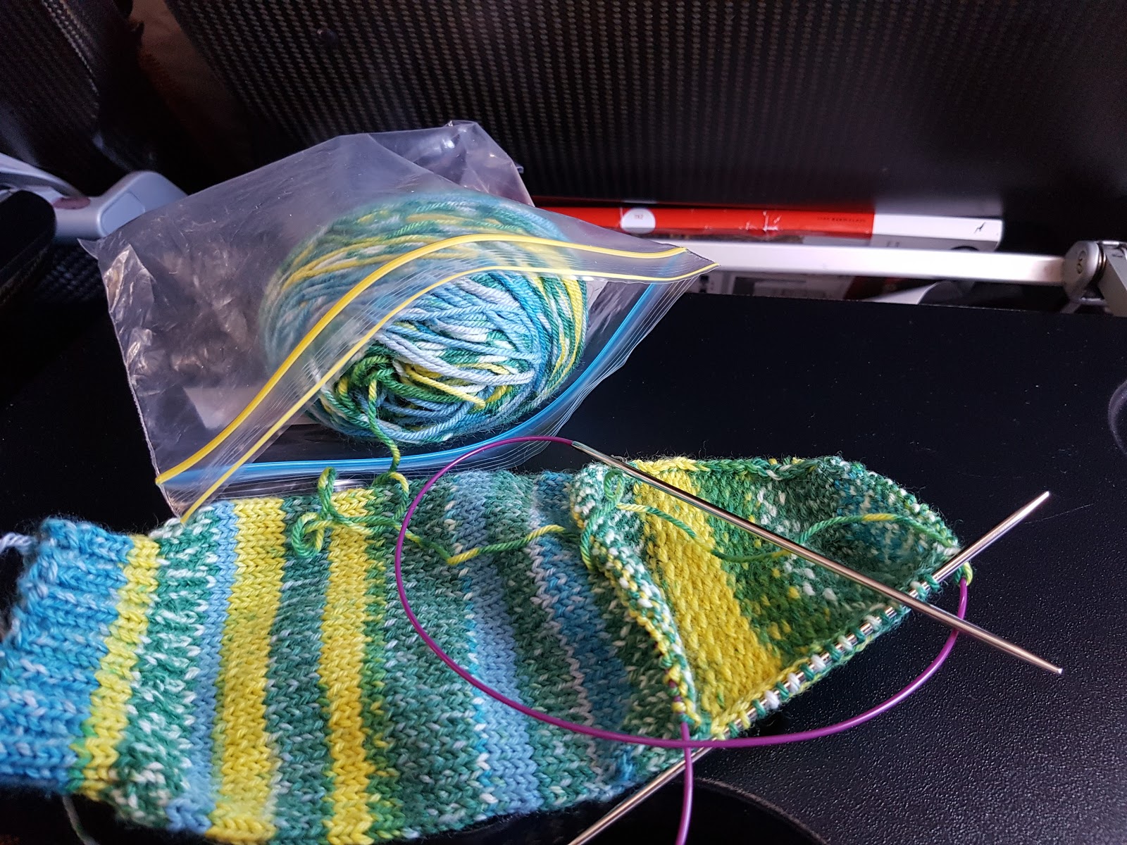 The trip from Sydney to LAX was fine. I took along my abandoned sock project from last year and knitted for the entire flight whilst watching various tv shows and movies.