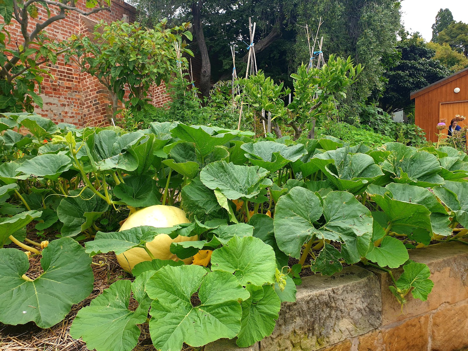 Every Friday night after dinner, I sit down with my crochet and watch a tv show called Gardening Australia. There is a presenter for most of the states of Australia. For many years one of the most popular presenters was Peter Cundall who filmed some of his gardening segments about vegies in the vegetable garden plots at the RTBG in Hobart. This area is called 'Petes Garden'. Now that he has retired from presenting, Tino Carnavale has taken over the Tasmania bit and also films his vegie gardening tips in Petes Garden. Mum, Dad and I loved walking through this section...